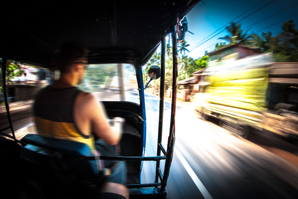 “We were escorted back up into the rickshaw, arms behind our heads,” says Chris, “and made to make a 200 kilometers detour. This detour took us to a rather commercial city on the east coast, but we were able to stumble across a cheap-as-chips 5 star resort equipped with an infinity swimming pool and complimentary bubbly. We packed our boots. What an improvement a day makes...”